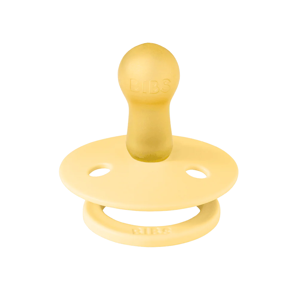 Colour is the original BIBS pacifier and has been on the market for over 40 years. It has the signature round BIBS shield with three vent holes and round BIBS engraved handle ring. The shield is carefully designed to curve away from the sensitive and delicate skin around the baby’s mouth to prevent moisture build-up.