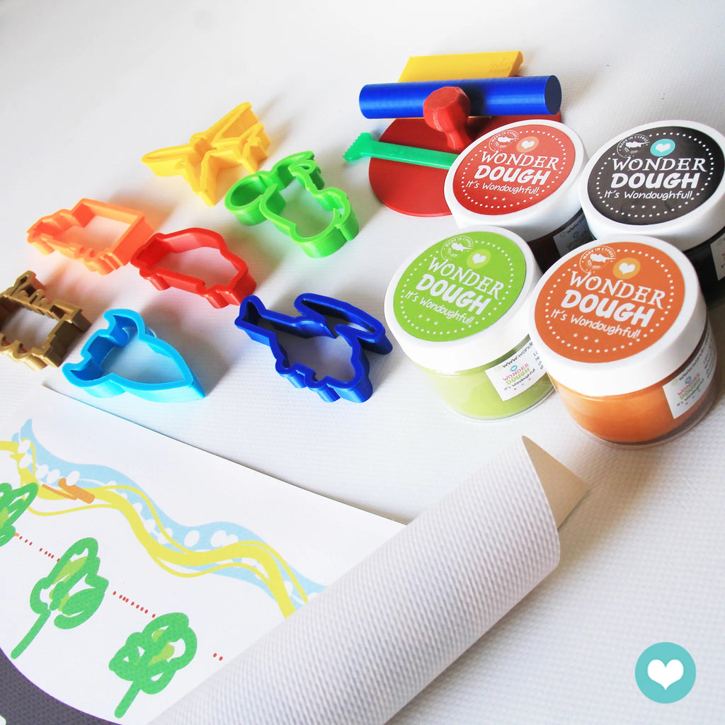 Vroom Vroom... Transportation is a big subject in the early years curriculum and cars are a favourite play time for so many children. So we created a set for you to Vroom Vroom with Wonderdough! :) Create all the different modes of transport and imagine all the fun places you can go.. make all the sounds choo choo and dive into some creative play.