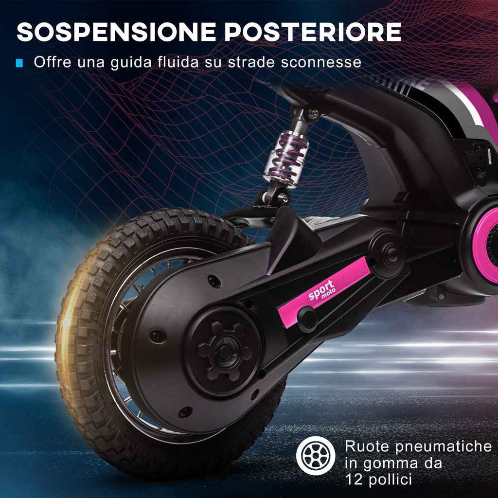 Electric Motorcycle for Children with Manual Throttle, 2 Speeds 8-16km/h, Age 8-12 Years, Pink