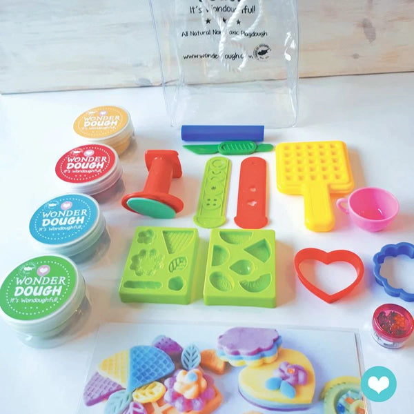 The Waffle Set is another favorite! The mini waffle maker is addictive! Children love to make food with playdough and this pack is a hit!